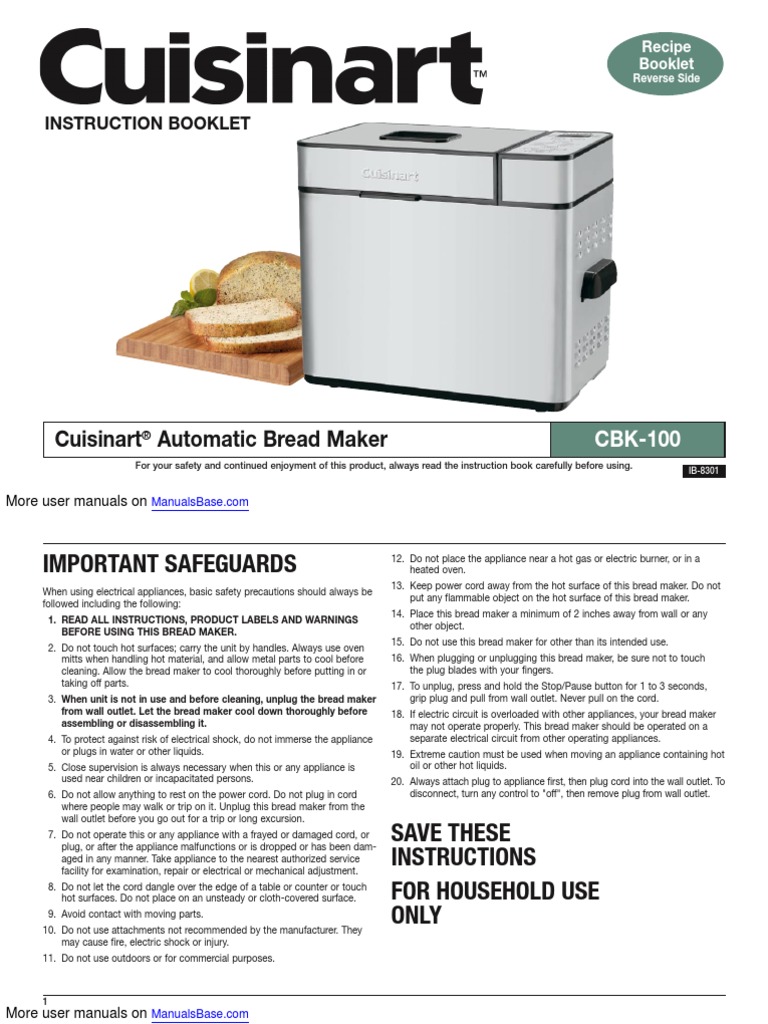 Recipe Booklet For Cuisinart Model Cbk-110 Bread Maker : Best Bread Machines For Home Bakers In 2021 Cnet / This cool bread maker also has a recipe book, a measuring cup, and measuring pan to make your work easy.